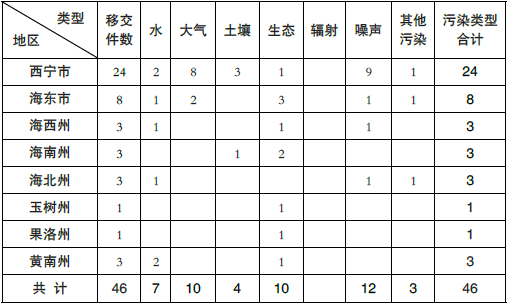 青海省中央生态环境保护督察群众来信来电举报污染类型统计表(第六批)