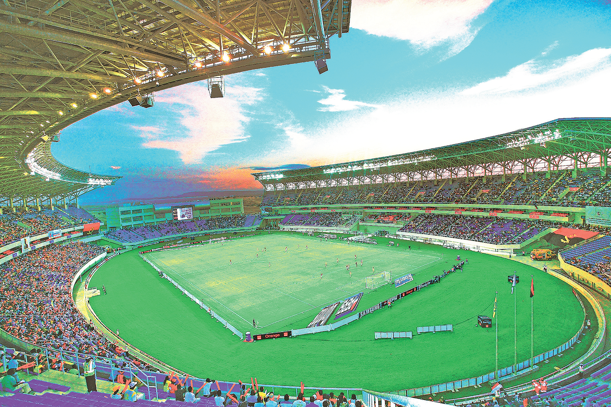 随着安哥拉籍主裁判一声哨响,第27届非洲杯足球赛C组第一场比赛在本格拉体育场正式拉开帷幕,标志着本格拉体育场正式投入使用。