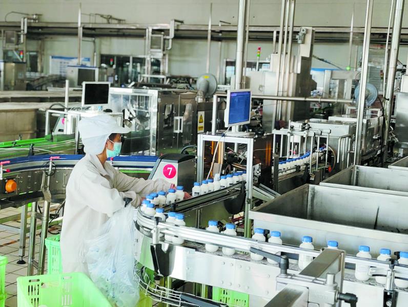 在无菌灌装车间,一排排整齐的管道直通灌装机,鲜奶随着灌装机有节奏的声响被灌装进包装袋内。一袋袋鲜奶在传送带上匀速前行,前往包装车间。包装车间里,机器变得格外“热闹”,工人也明显增多。有的机器正在将包装箱展开,有的则负责将袋装奶装入箱内,还有的负责粘贴包装;工人们有的负责关注每袋牛奶的重量,有的监测记录,有的搬运……袋装奶、瓶装奶、凝固酸奶、搅拌酸奶在这里“碰面”,“青海老酸奶”“托伦宝”“藏之宝”“青藏人家”“雪域圣纯”“小西牛”几大品牌在这里汇集,随后被运送至仓储中心等待发往全国各地。