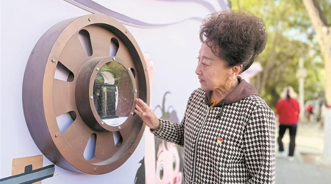 “烟火城东·中庄里”街头博物展里的铁路老物件吸引着郭雅馨。记者 张慧慧 摄