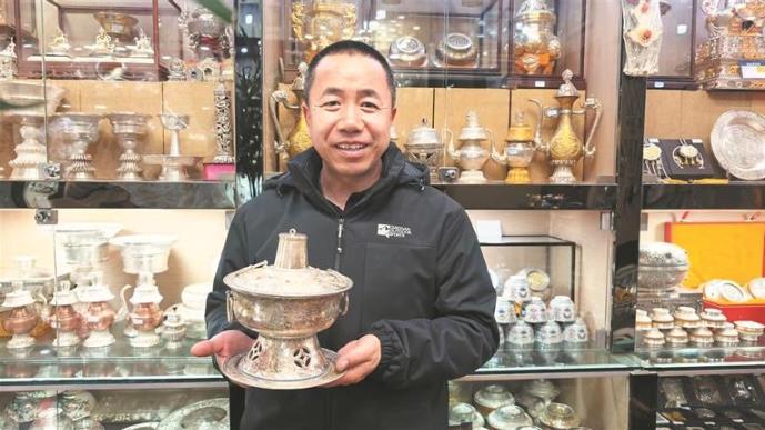 我们还跟着市场转方向,从单一的民族用品转向大众化产品,茶具、酒具、年轻人喜欢的定制首饰成了畅销款,还配合区就业服务局把银铜器加工申请成省级劳务品牌。