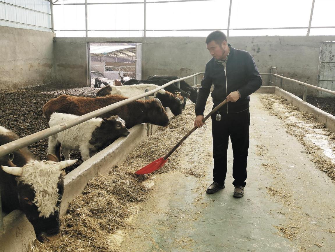 2015年,他牵头成立大通伊绿种养殖专业合作社,流转附近村庄约66.67公顷土地,在泉湾村后山搭起两栋畜棚,将规模扩大到60头牛。“没有雇一个人,从配饲料到清牛粪,从播种到收割,全靠家里人的几双手。”