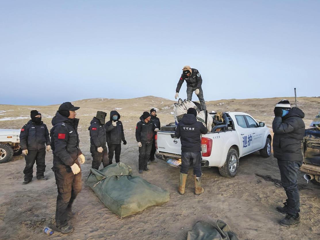 “此行主要为打击N35非法穿越,我们沿着非法穿越者常走的路线,路上也遇到了很多困难。”随队记者口述,为了尽早赶到库南保护站,8日20时一行人从太阳湖出发,车辆却不断陷入冰河,还遭遇了爆胎。9日早晨6时,大家才在车里休息了两个小时,之后接着赶路。在断断续续的信号中,随队记者陆续发回现场照片和视频。