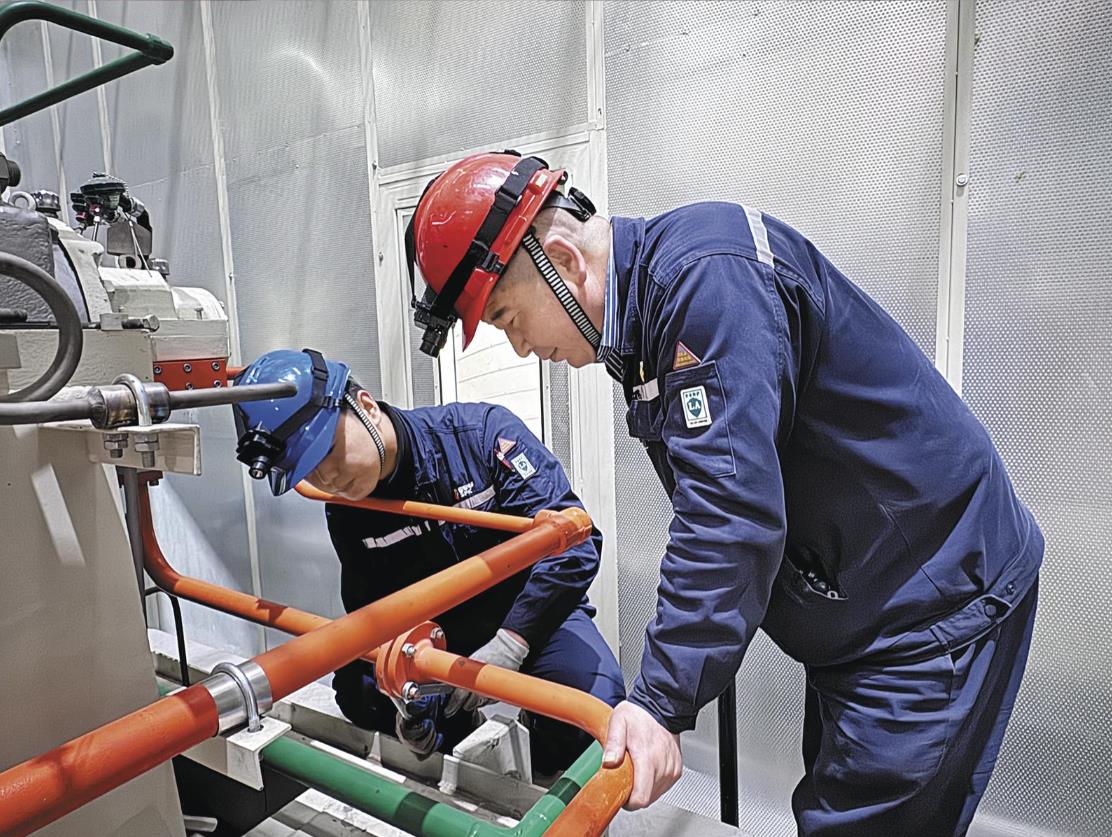 “首季度3号机组顺利完成3号锅炉水压试验、吸收塔安装、开闭式水系统冲洗机炉侧重要转机试转等关键节点。目前安装进度完成90%,调试进度完成40%。”青海桥头发电有限责任公司工程部副主任周学义介绍:“针对高海拔、低气压、气候多变特点,我们优化施工工序,去年基本完成室外作业,抢先建成主厂房及辅助厂房,提前创造室内作业条件,强化资源统筹,抢抓施工黄金期保障进度按节点严格执行。”